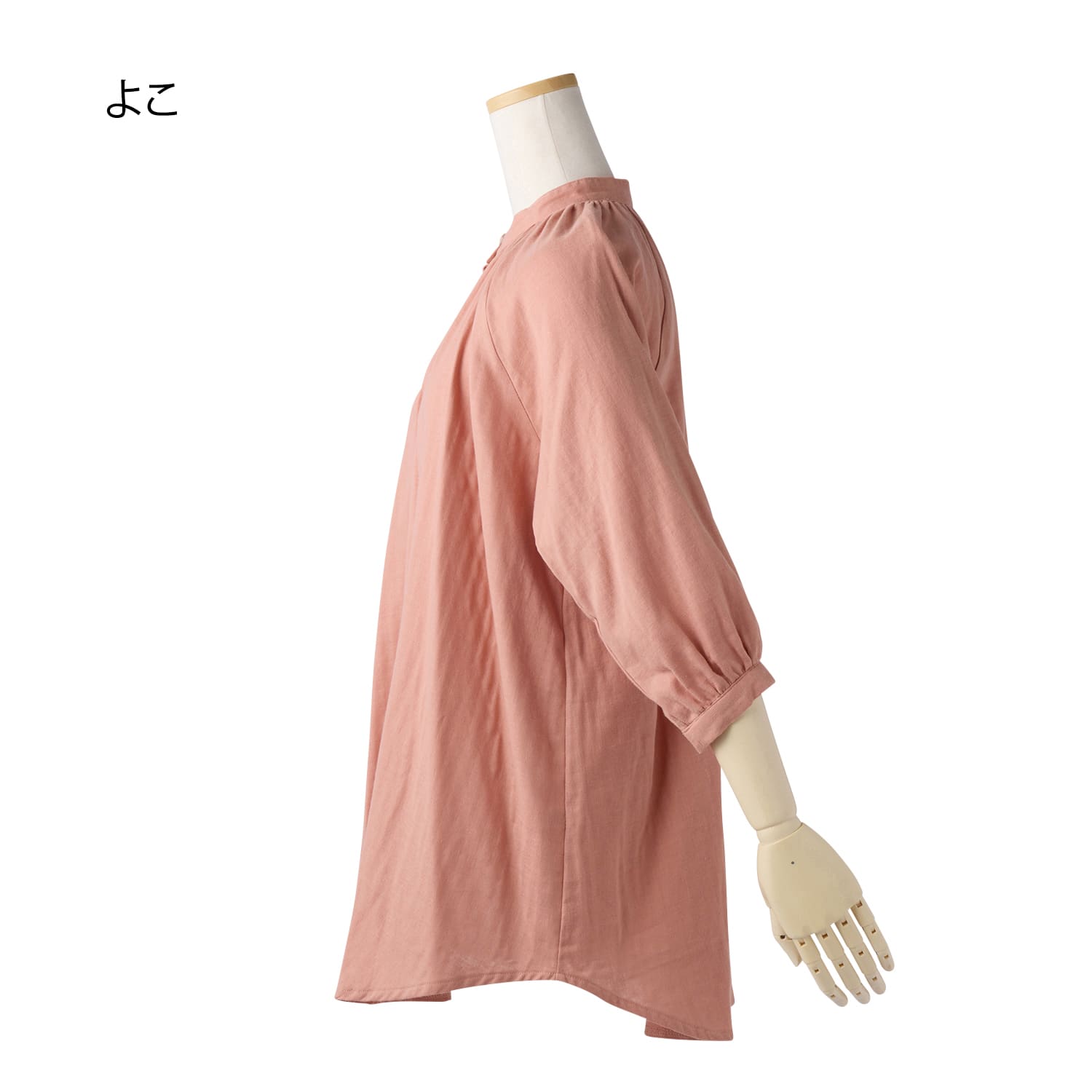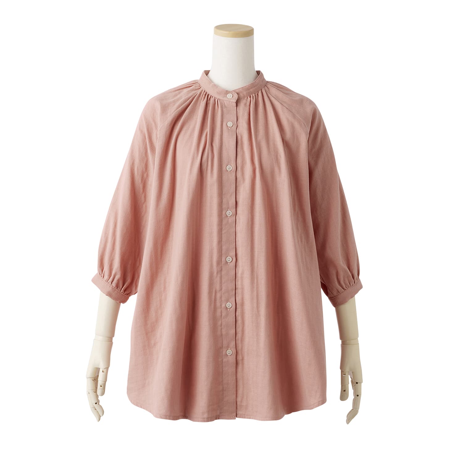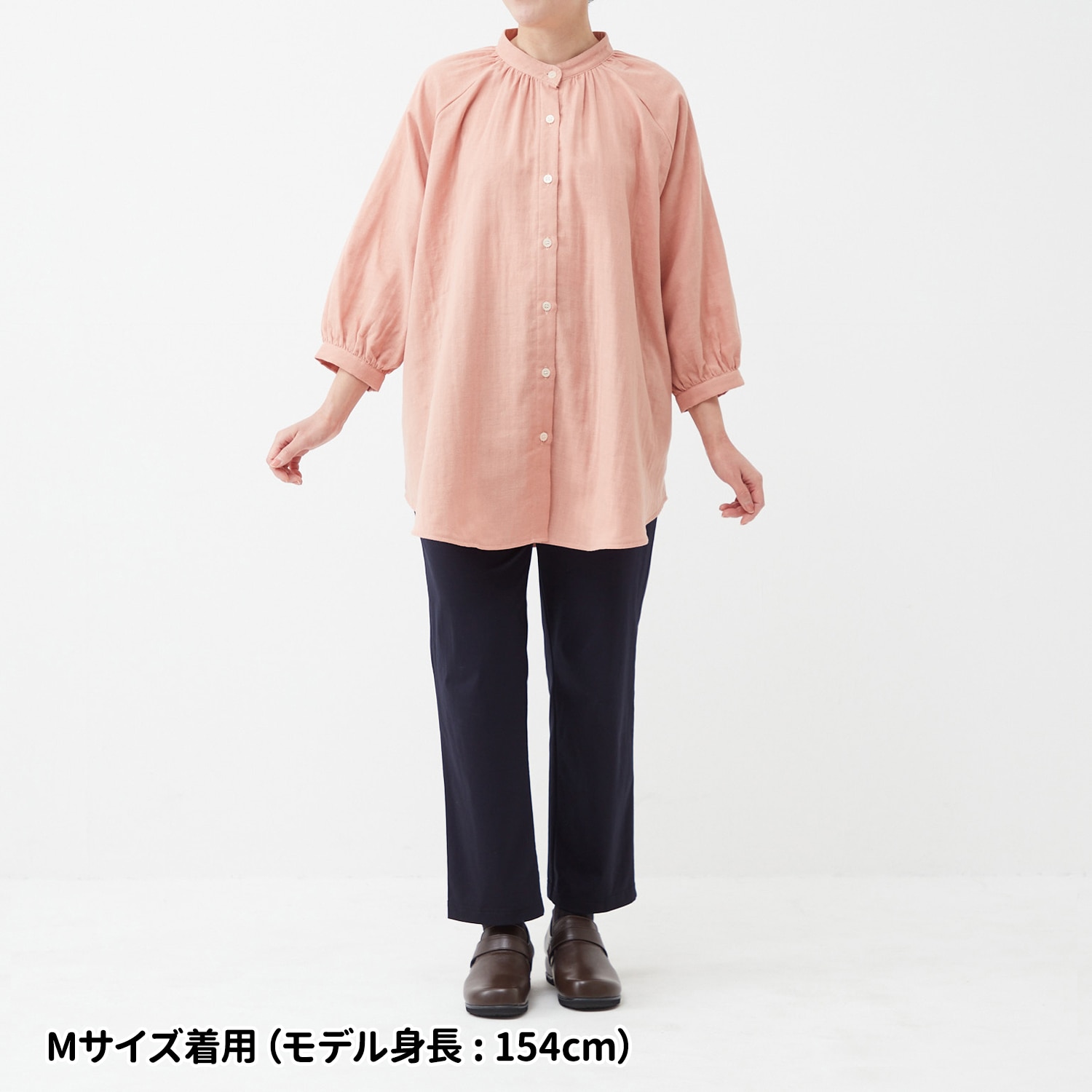 柔らかな肌触りとふんわりシルエットを叶えるダブルガーゼの生地を使用。軽やかな着心地で、洗うたびに柔らかくなります。衿回りが華やぐギャザーをあしらいつつ、お腹回りが隠れる長め丈ですっきり着こなせます。七分袖なので見た目にも軽やか。ラグランスリーブで肩回りも楽ちんです。