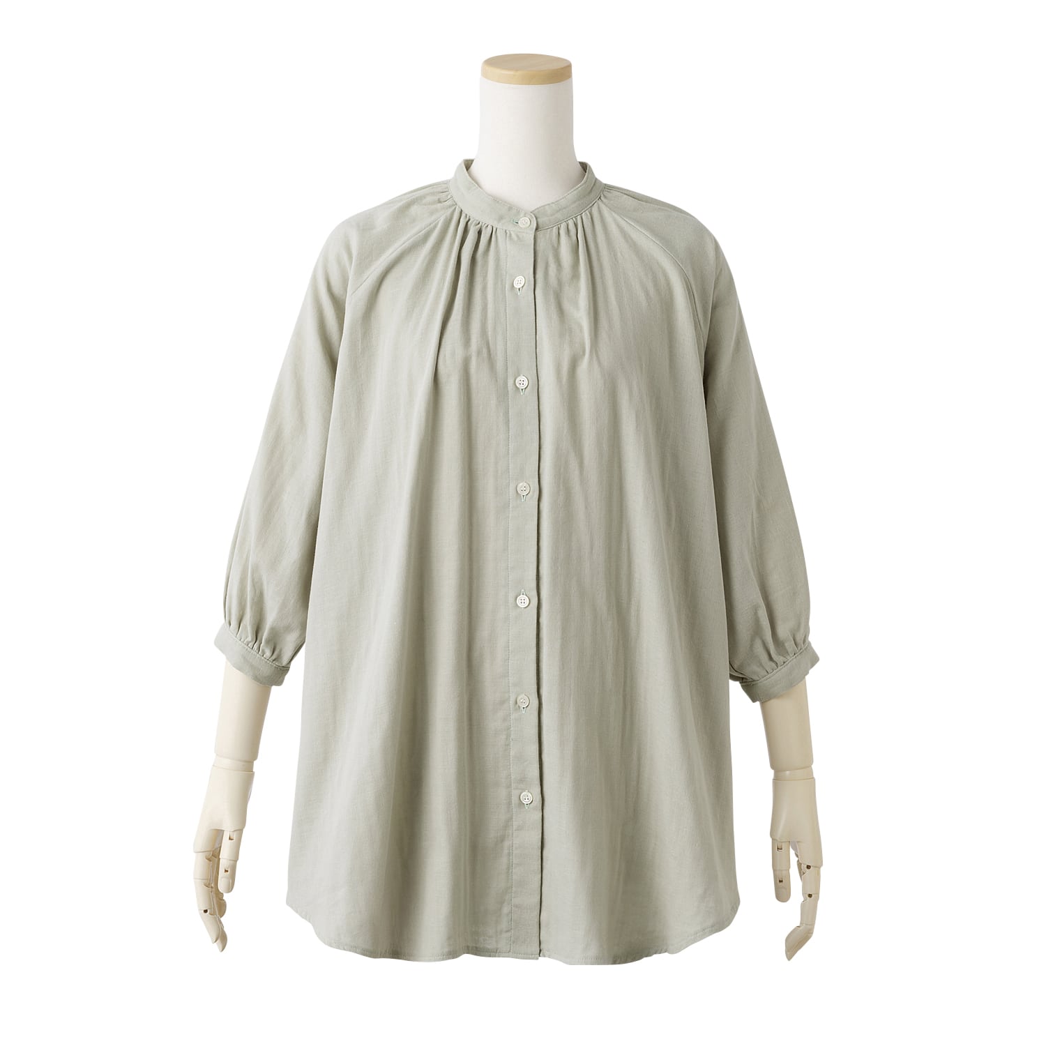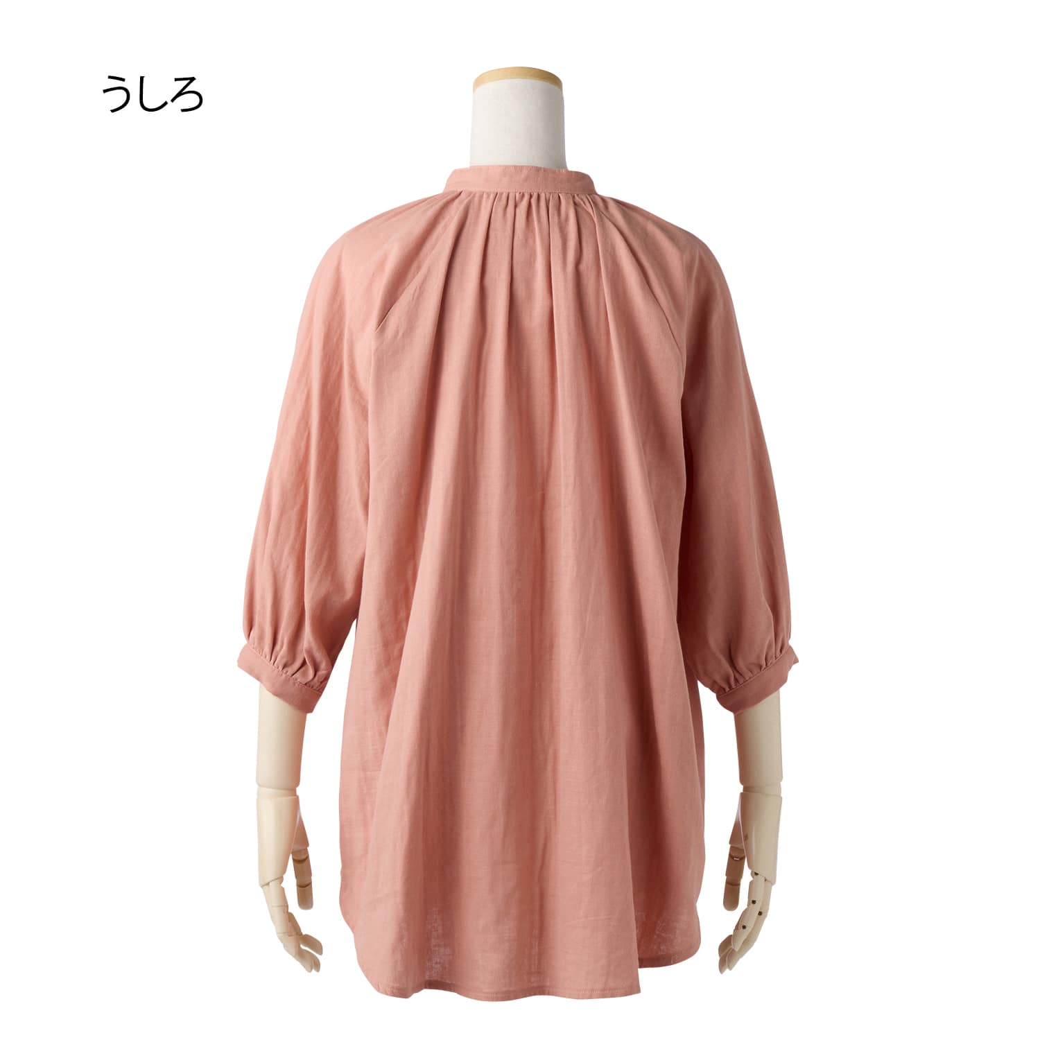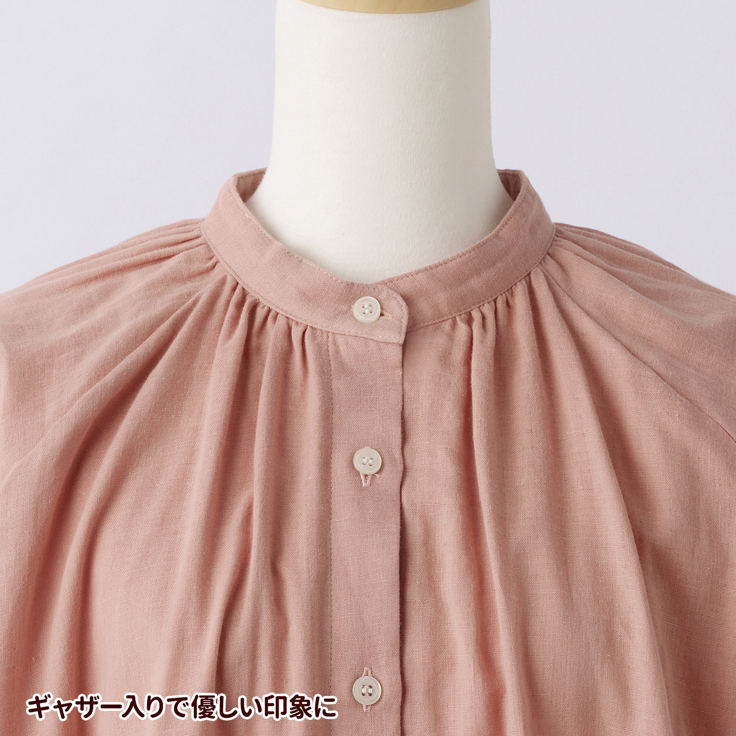 衿回りが華やぐギャザーをあしらいつつ、お腹回りが隠れる長め丈ですっきり着こなせます。