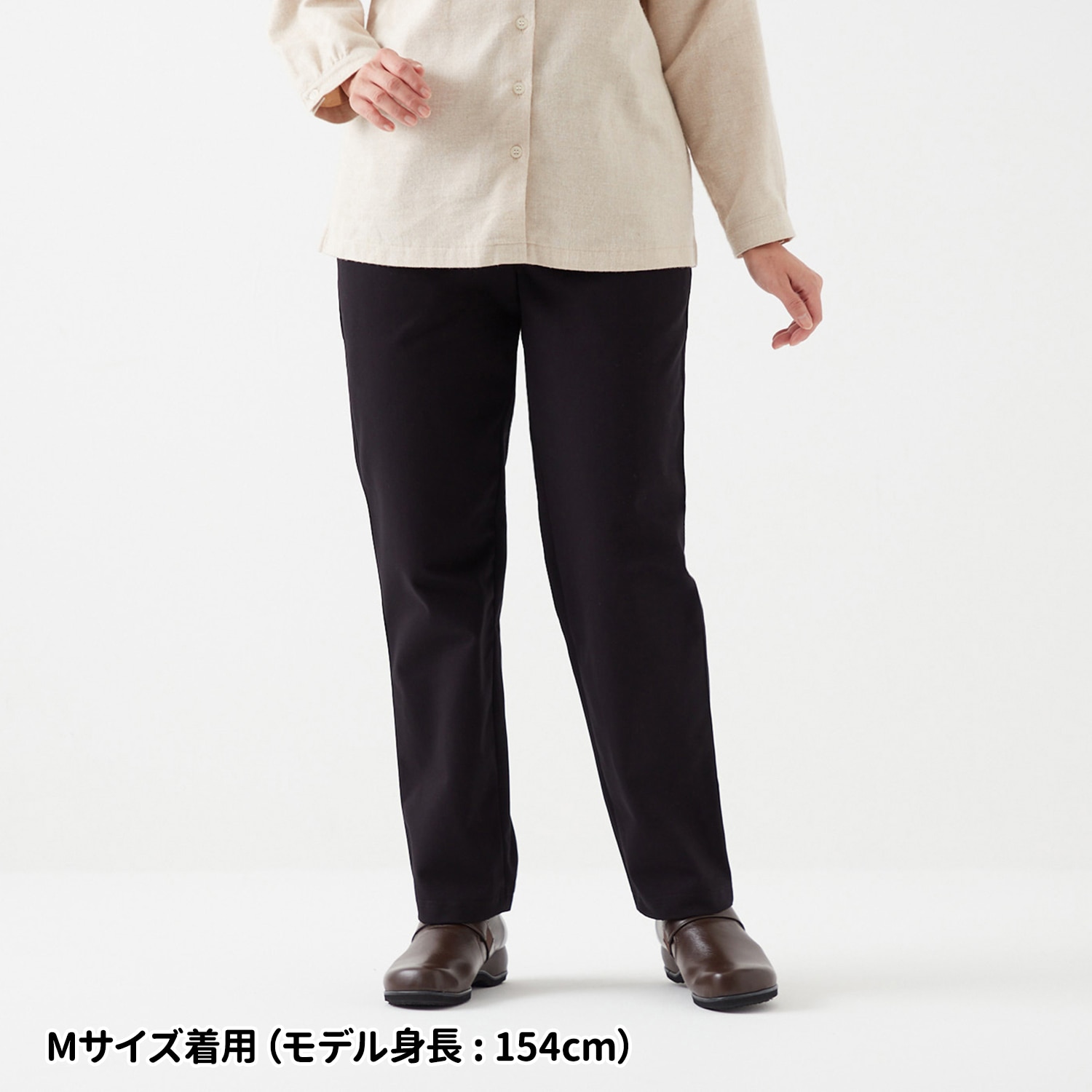 肉厚の生地が脚のラインをカバーし、体型をきれいに見せるストレートシルエット。