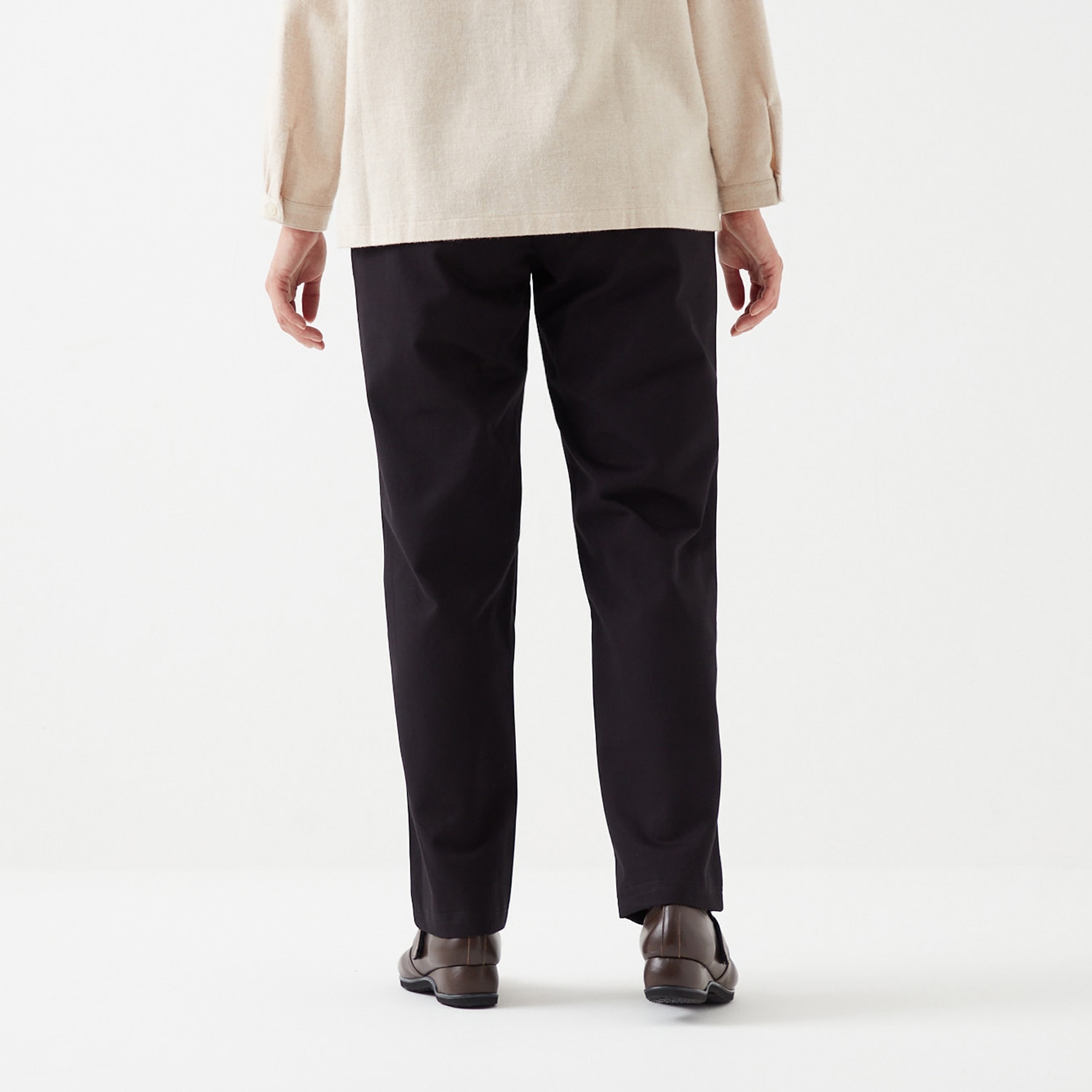 厚手のツイル生地に起毛加工を施した高級感のある質感に仕上げました。暖かな風合いで、はいた瞬間から温もりに包まれます。肉厚の生地が脚のラインをカバーし、体型をきれいに見せるストレートシルエット。ウエストの後ろはゴム仕様ではき心地も楽らく。股下60㎝丈も加わり、3レングスからぴったりのサイズをお選びいただけます。