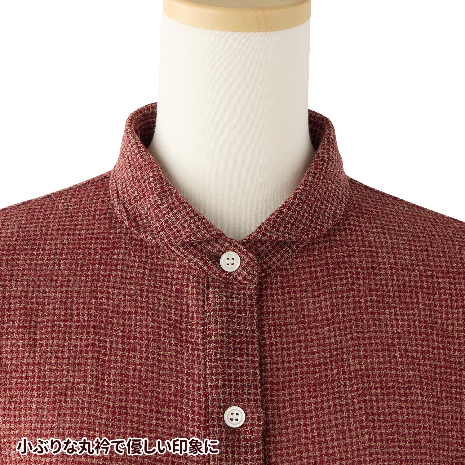 小さな丸衿が上品な印象。