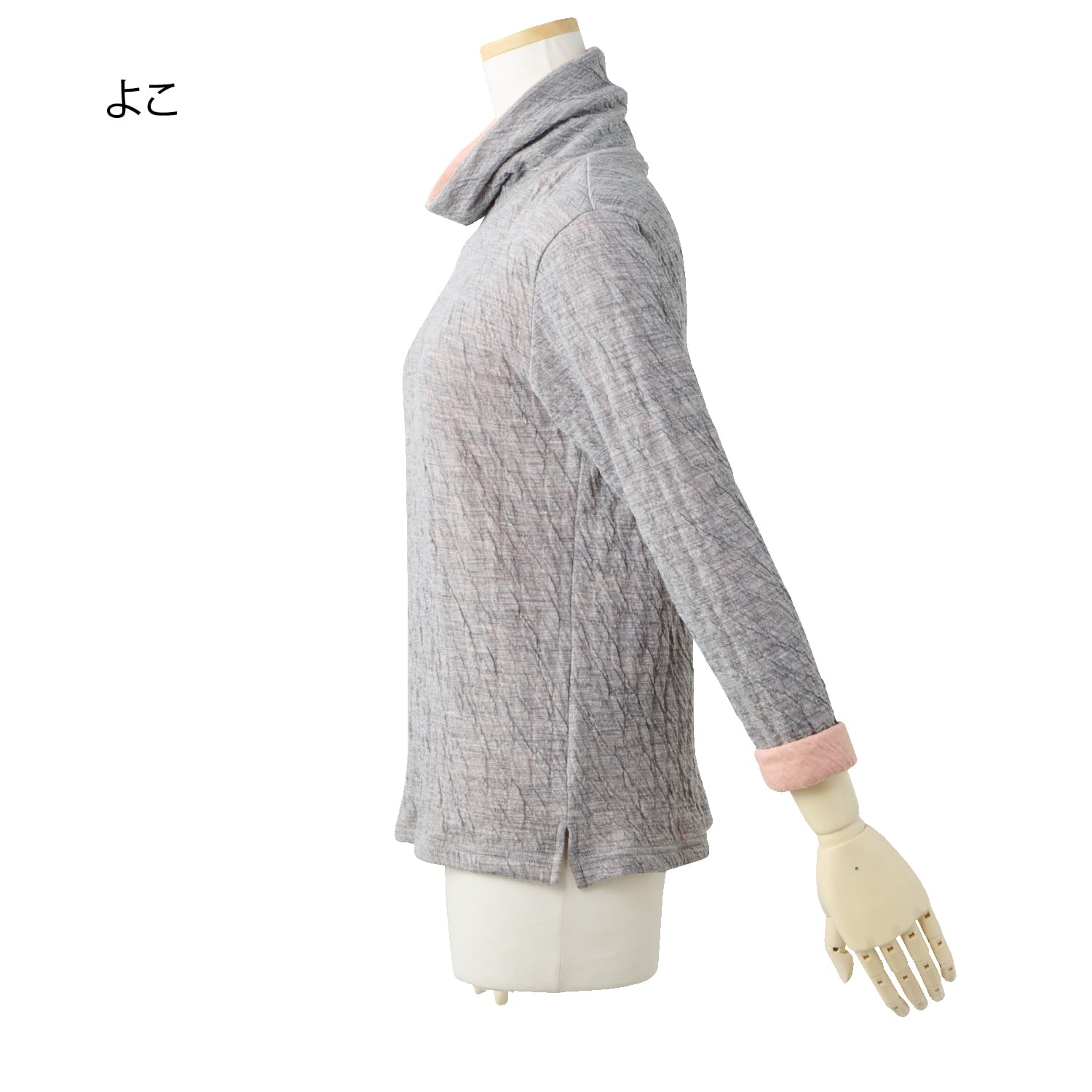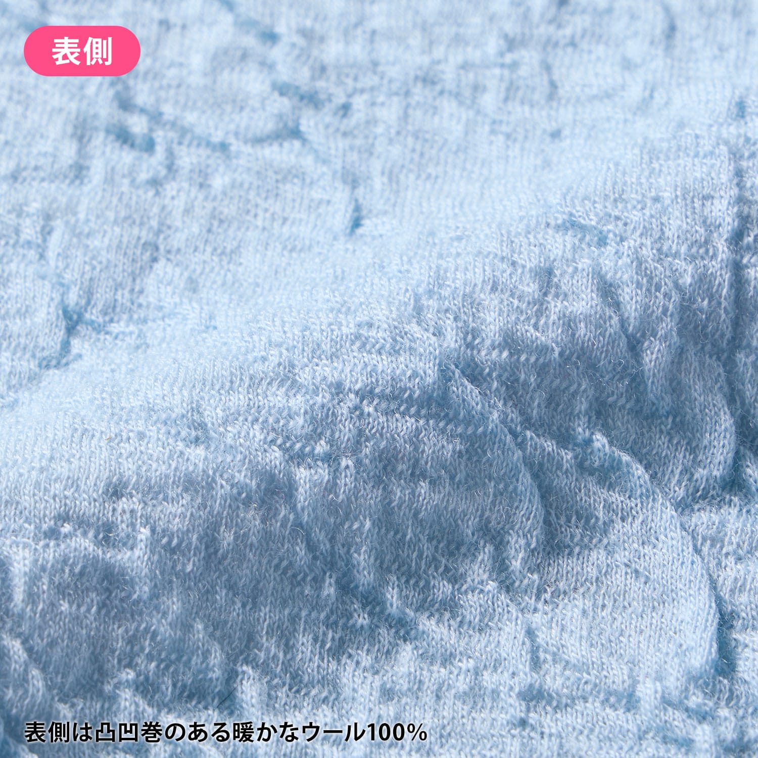 保温性のあるウールと、優しい肌触りのコットンを重ね合わせた接結素材。