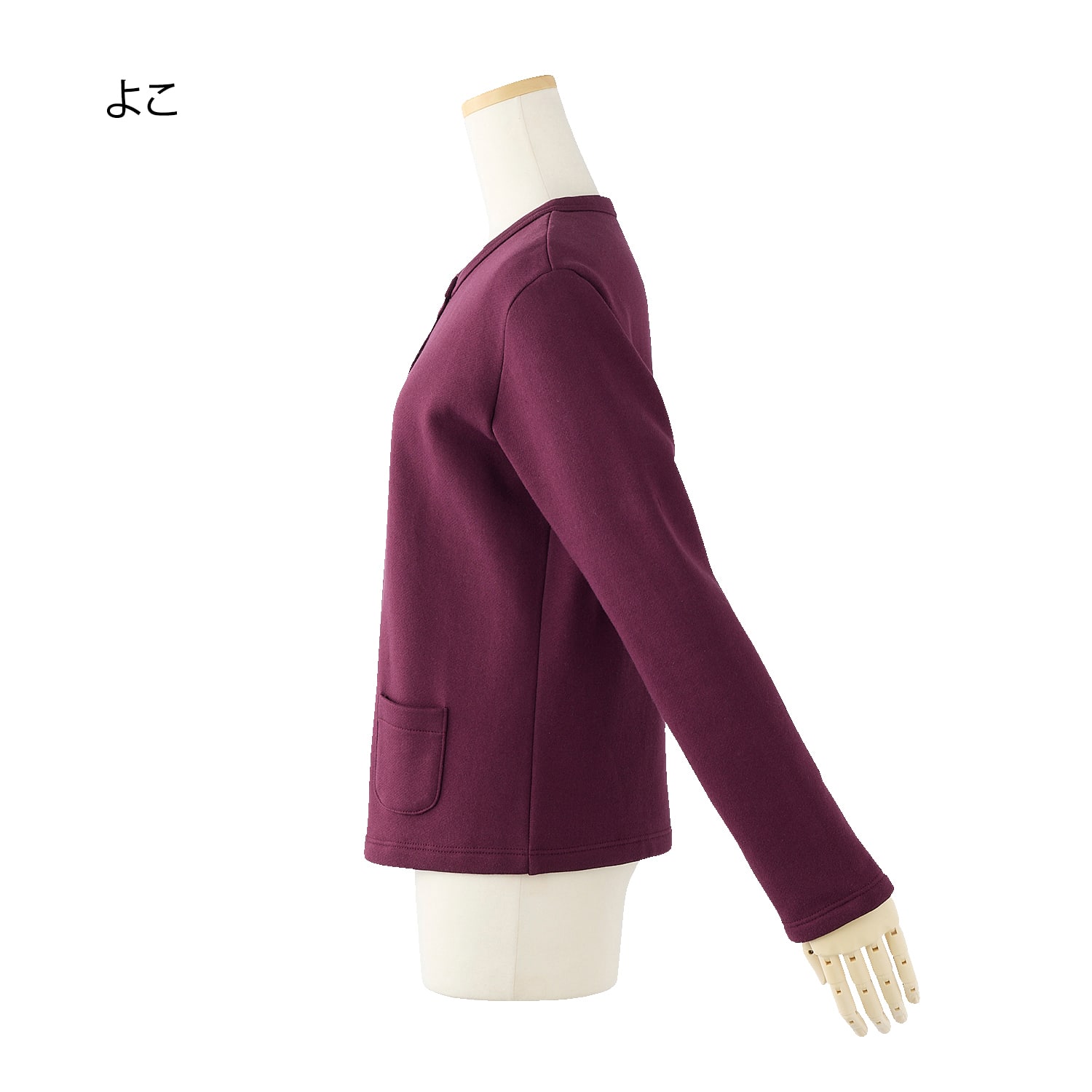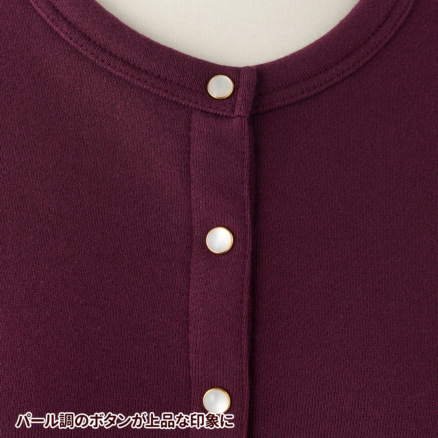 綿100%生地の裏面を起毛させた、ふんわりとした質感と暖かさが嬉しいカーディガン。カットソーながら適度なハリを持つ素材で上品な印象。ゆったりとしたシルエットで、インナーももたつかず着回しやすい一枚です。パール調のドットボタンと小さめのポケットがアクセントに。