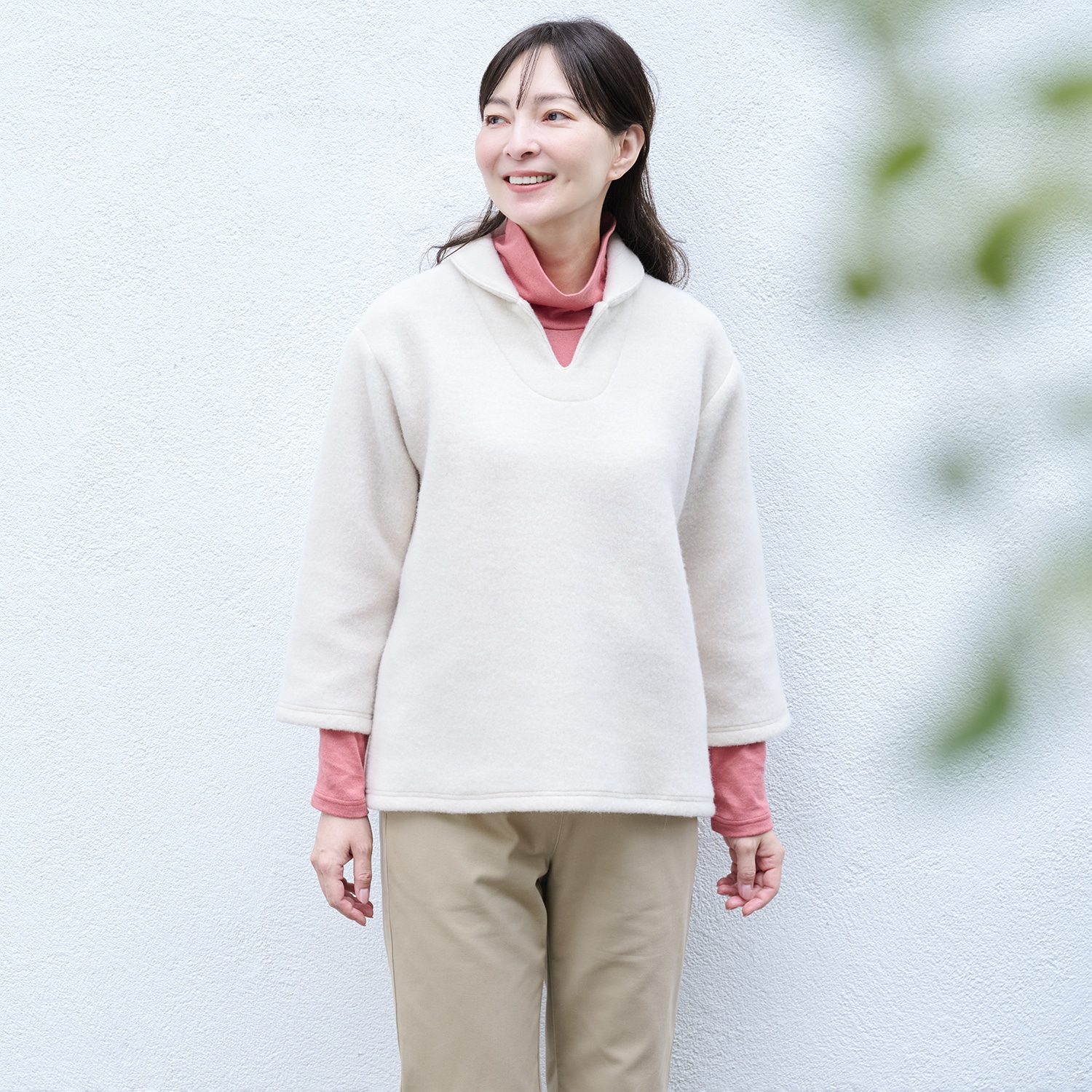 コットンにカシミヤをブレンドすることで、より柔らかく暖かな風合いに編み立てました。首もとのチクチク感がなくなめらかな肌触りです。シンプルなタートルネックでインナーとして合わせやすく、幅広く着回せます。スリット入りでお腹回りもゆったり楽ちんです。