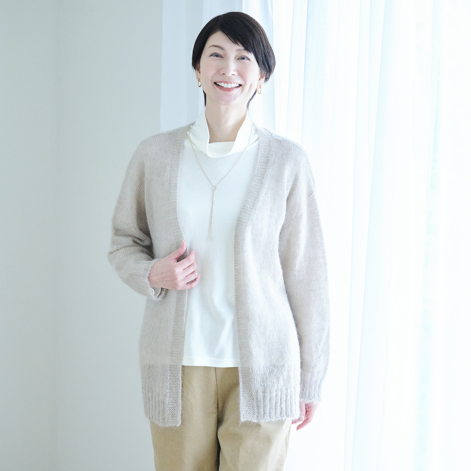 コットンにカシミヤをブレンドすることで、より柔らかく暖かな風合いに編み立てました。