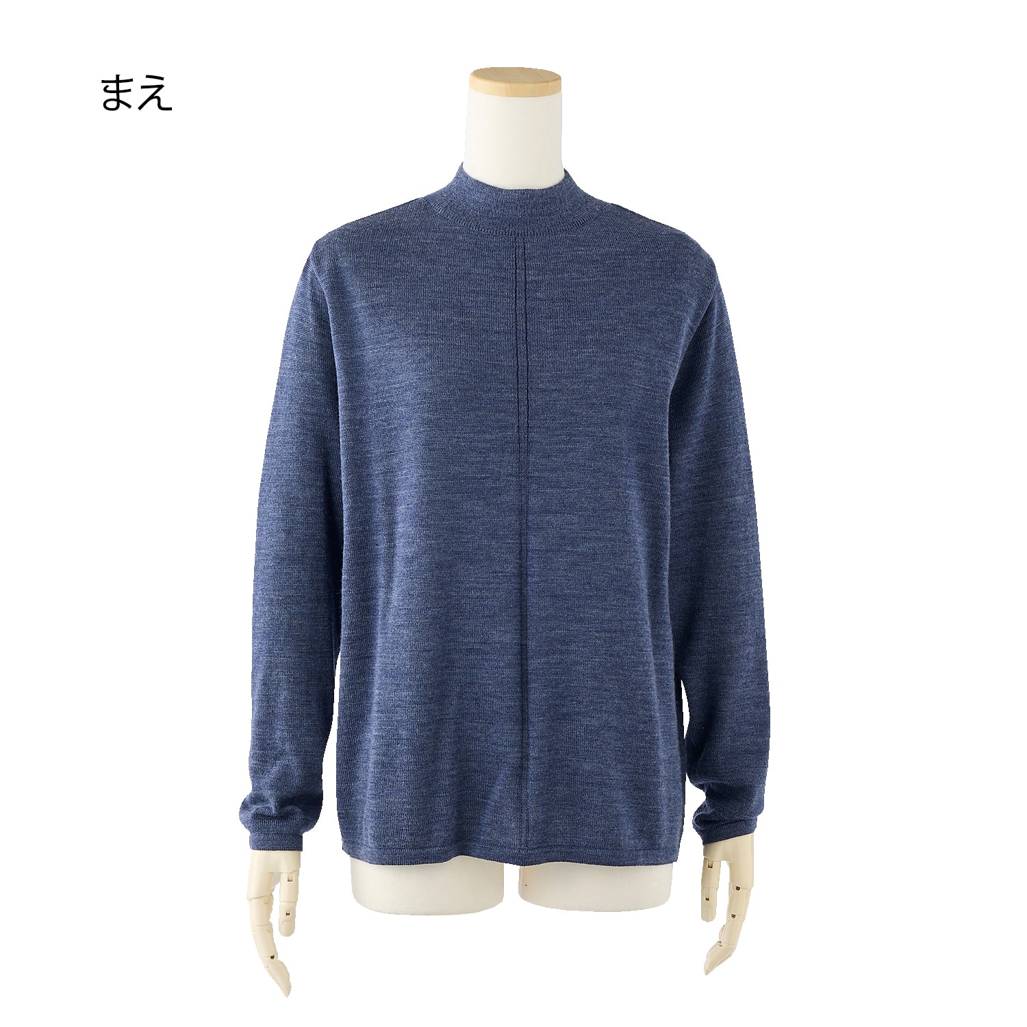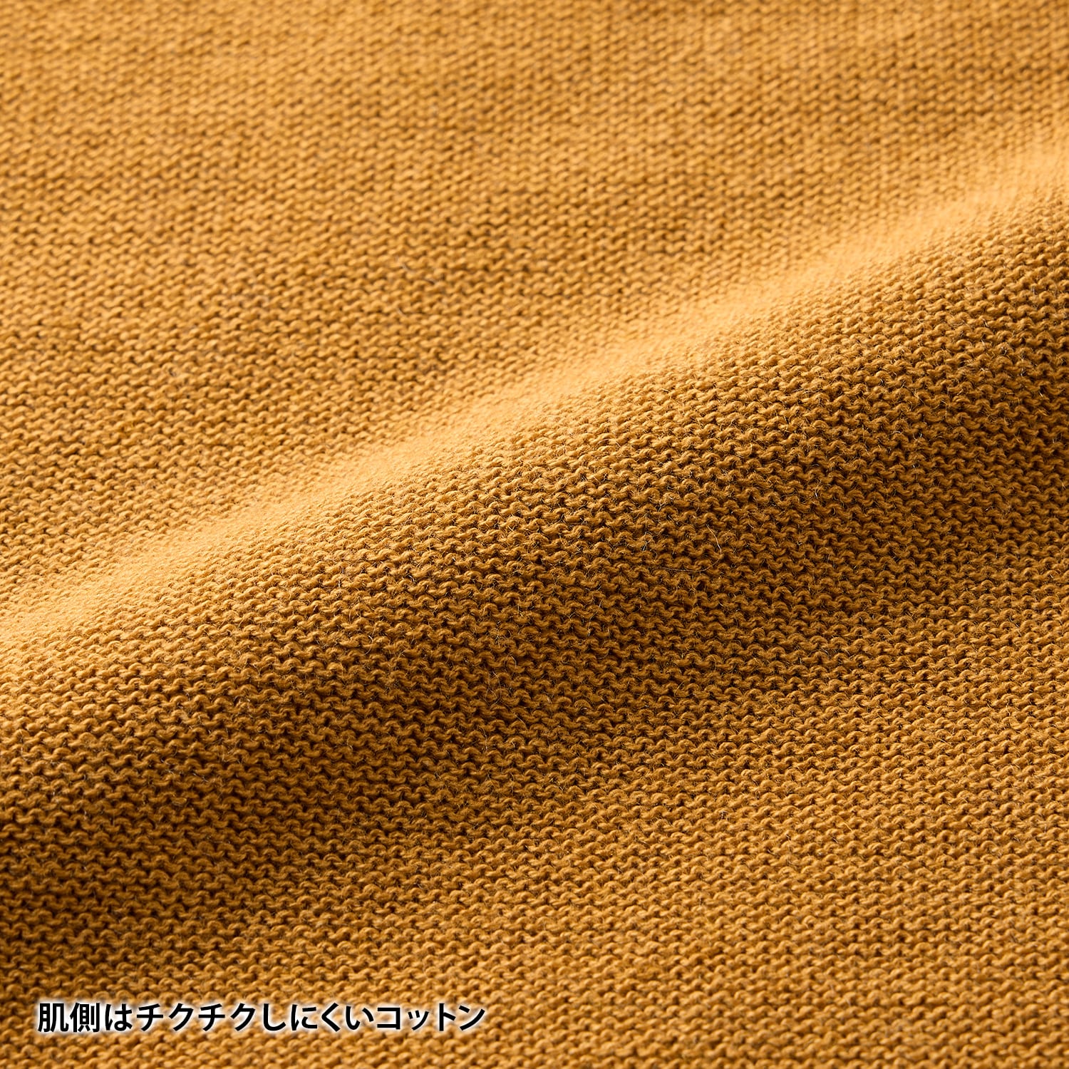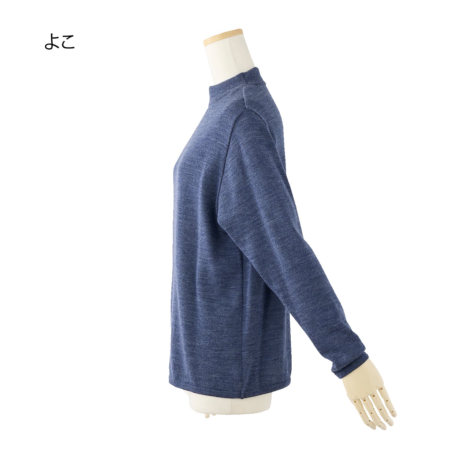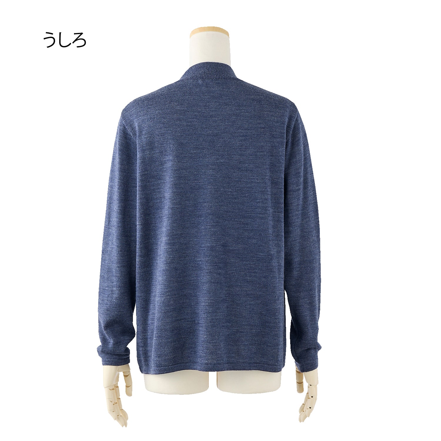 表はウォッシャブルウール、裏は肌当たりの良いコットンを使って編み上げたニット。