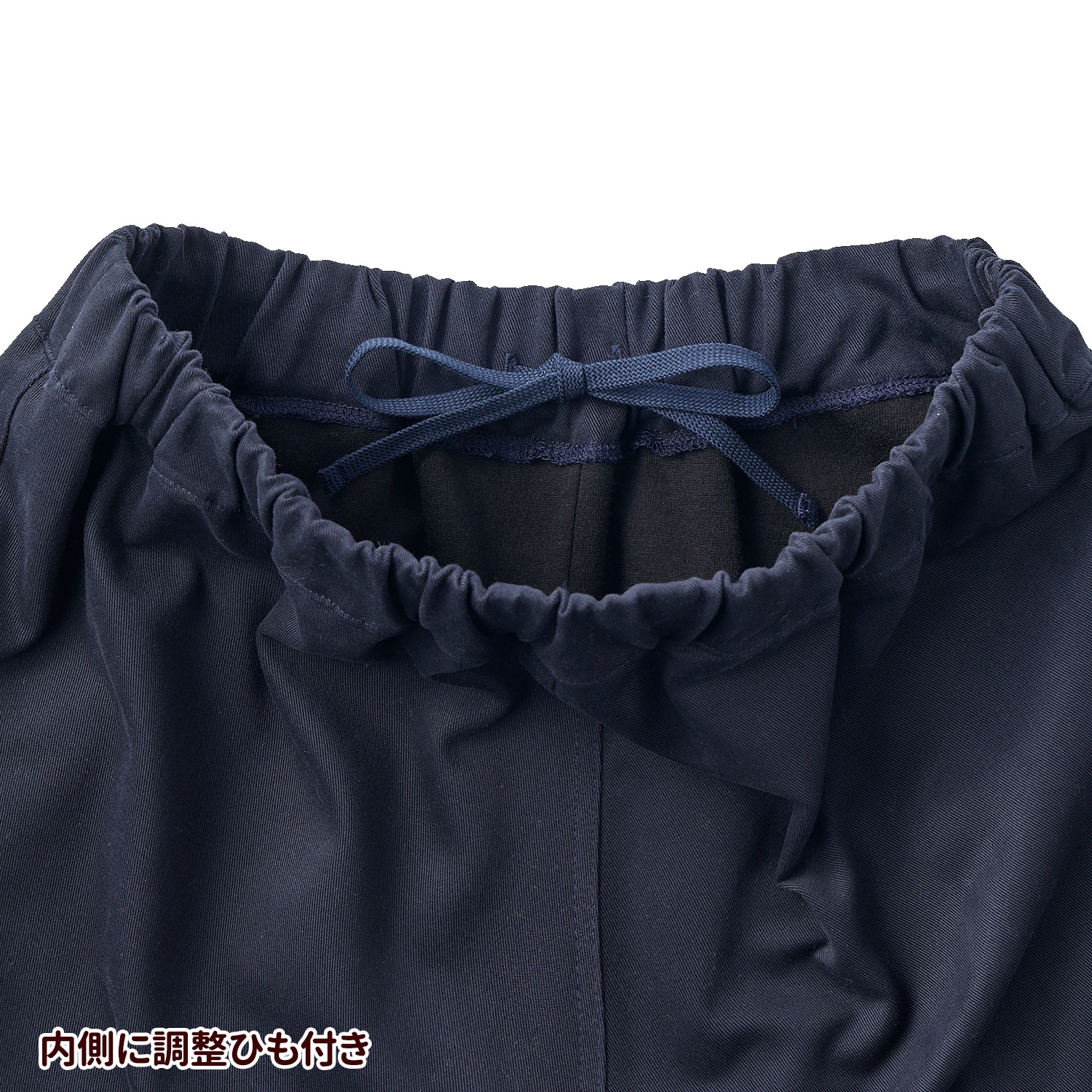 ウエストはゴム仕様と内紐付きで、サイズ調節も簡単です。