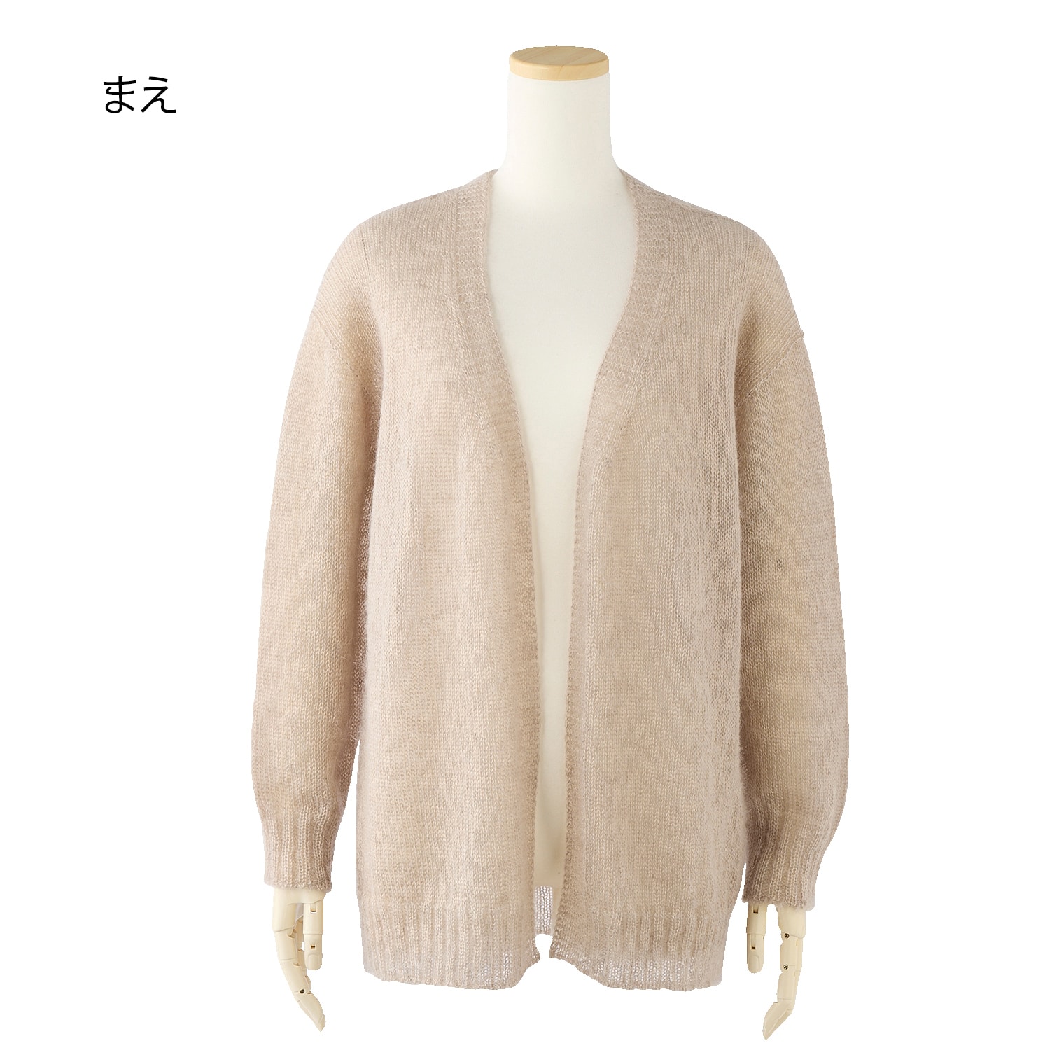 モヘアとシルクのブレンド素材で編み上げた高級感あふれるニットカーディガン。ふわふわと柔らかくなめらかな肌当たりで、驚くほど軽い着心地。保温性が高いので羽織るだけで暖かく、少し長めの丈感で冷えやすい腰回りもカバーします。着流しタイプのシンプルなデザインで、合わせるインナーやボトムスを選びません。