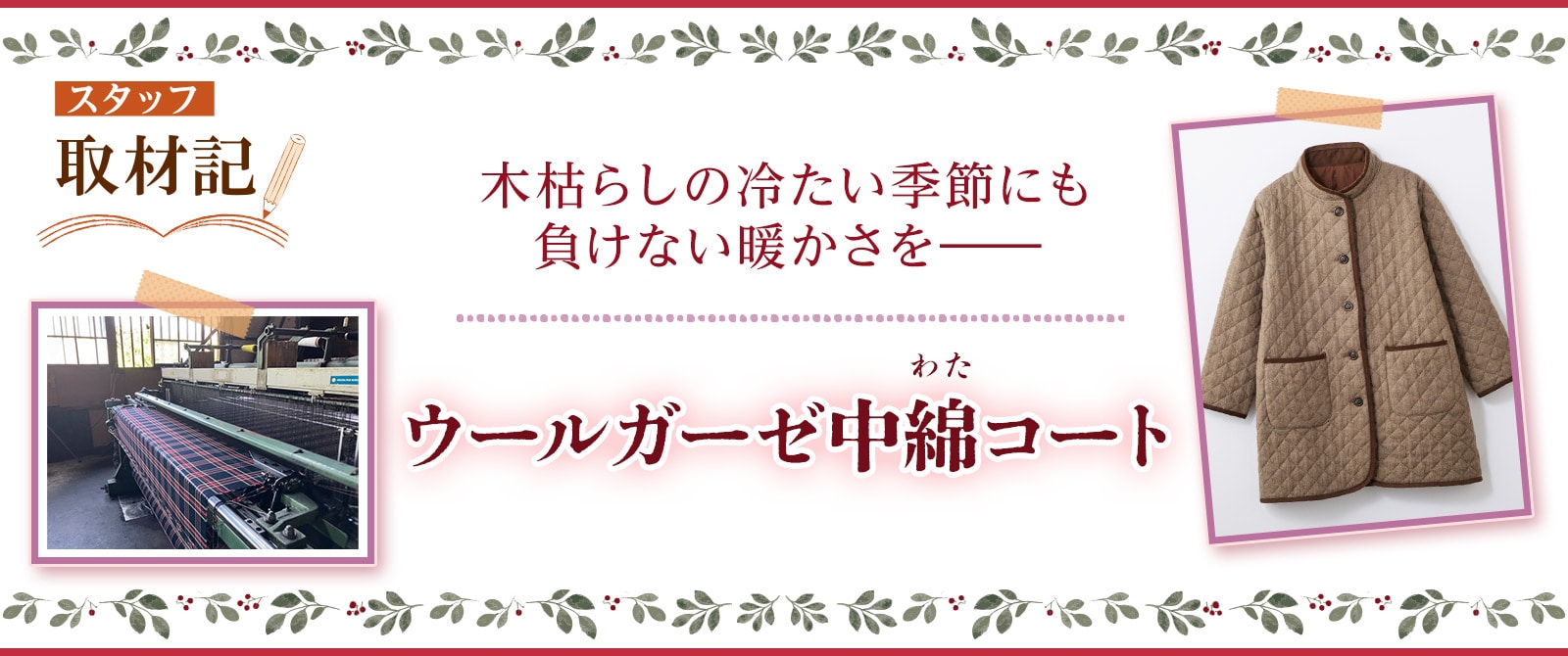 寒さが厳しい季節、『着心地のいい服』冬アイテムで注目していただきたいのが、「ウールガーゼ中綿コート」です。